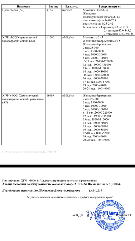 Анализы хгч и прогестерон!26 ДПО