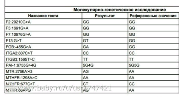 Анализы, инфекцииДевчонки, у кого проблемы с кровью. Какие анализы вы контролируете при беременности? У меня сейчас 18 недель, гематолог назначил контроль только д-димера. Если он повышается в 1,5 раза тогда только колоть уколы. Но меня беспокоит больше мутация PAI. Смотрю многие РФМК контролируют. Сейчас хочу сдать гемостазиограмму и пойти на консультацию к другому врачу. Боюсь что-то упустить. Расскажите ваши истории. Последний раз сдавала д-димер и фибриноген. Они в норме. Ниже скан моих мутаций. Буду благодарна любой информации.
