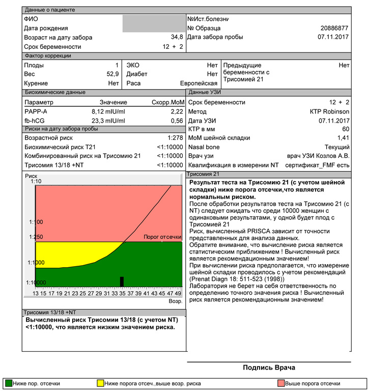 Результаты: УЗИ, КТГ, доплера, скринингаСкрининг был 7 ноября. Срок по УЗИ поставили 12+2.