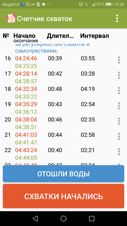 ночью в 1.30 начались каменения живота с периодичностью около 3 минут и длительностью по 45 сек. Поспать удалось только часа полтора и проснулась от треников. Ношпу 2 табл. выпила, в душ сходила, позже табл. Нифедипина ( я на нем с 20 недели), но каменения не проходят. В обед еще душ, ношпу, нифедипин. Интервалы стали больше, но не уходят. Давление поднялось несмотря на нифедипин (сбила допегитом). Сейчас треники идут с разной периодичностью, но продолжительность самой схватки увеличилась и больнее стала, но только низ живота, спина вообще не участвует. Все ж треники или схватки??? Пробка на месте, живот не опустился, только по большому уже 3 раза сходила. Первый скрин ночной, второй сейчас