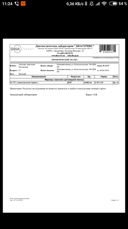 Завтра к сожалению не смогу переслать. Пока просто отменю эутирокс, а в четверг уже сразу к эндокринологу. Скажет пересдать, пересдам. Звонила в лабораторию, говорят дважды перепроверяли результат.
