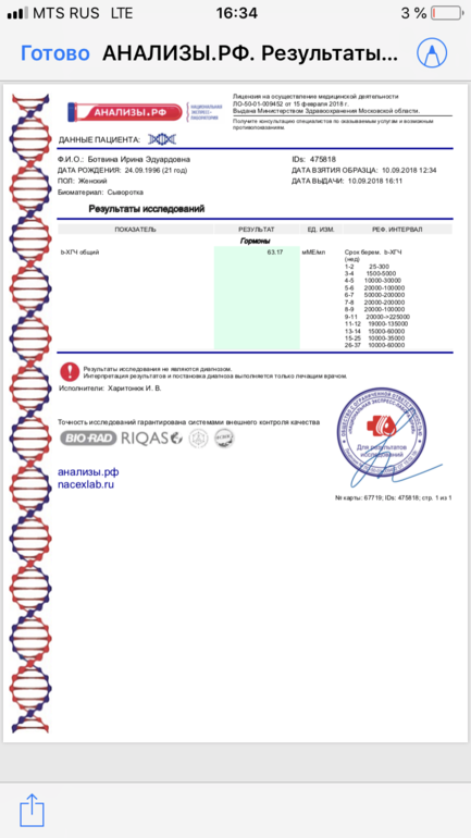 О Б узнала вчера : была и на УЗИ, и хгч сдавала и с врачом консультировалась.