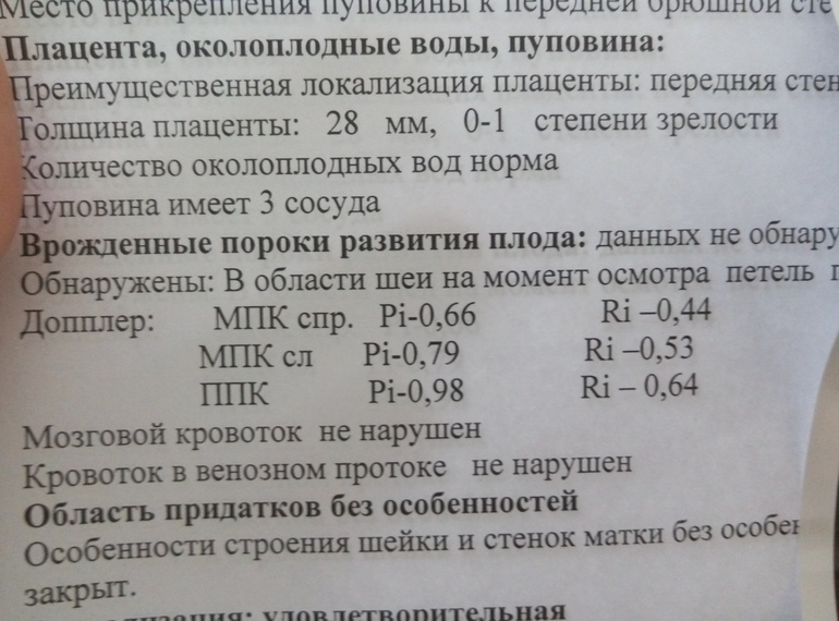 Результаты: УЗИ, КТГ, доплера, скринингаДоброго здравия всем пузяшам! Беременность 27 недель. Сегодня на узи смотрели кровотоки. В заключении написано, что все хорошо, но меня смутила последняя фраза врача: "пока все хорошо с кровотоками, но узи третьего триместра обязательно". После этого я ессесьно полезла штудировать информацию и нашла условную таблицу норм. По ней мы как-то слабо вписываемся.