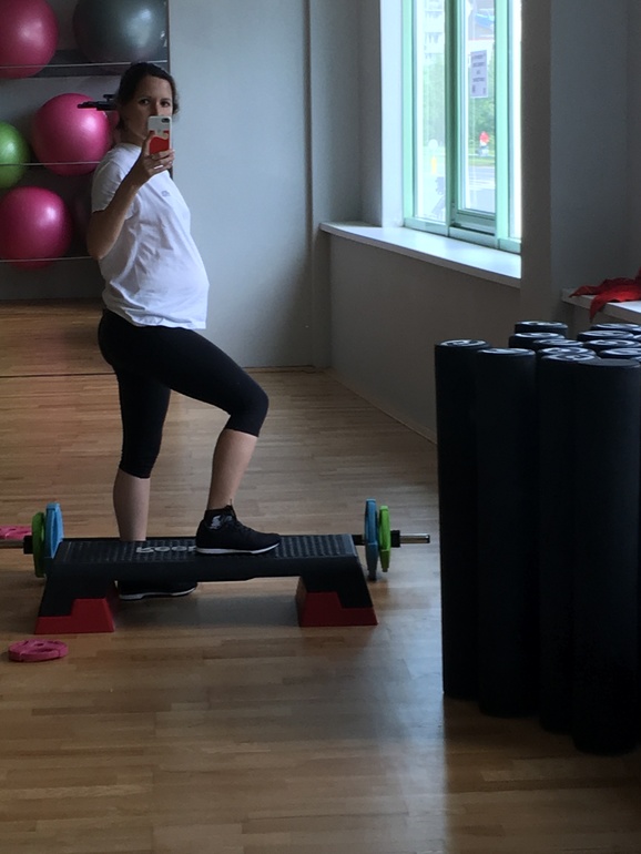 Возможно, это последний поход в зал или один из последних, все-таки на таком сроке я, наверное, уже могу себе позволить оставить только бассейн и домашние занятия с гантелями и утяжелителями.