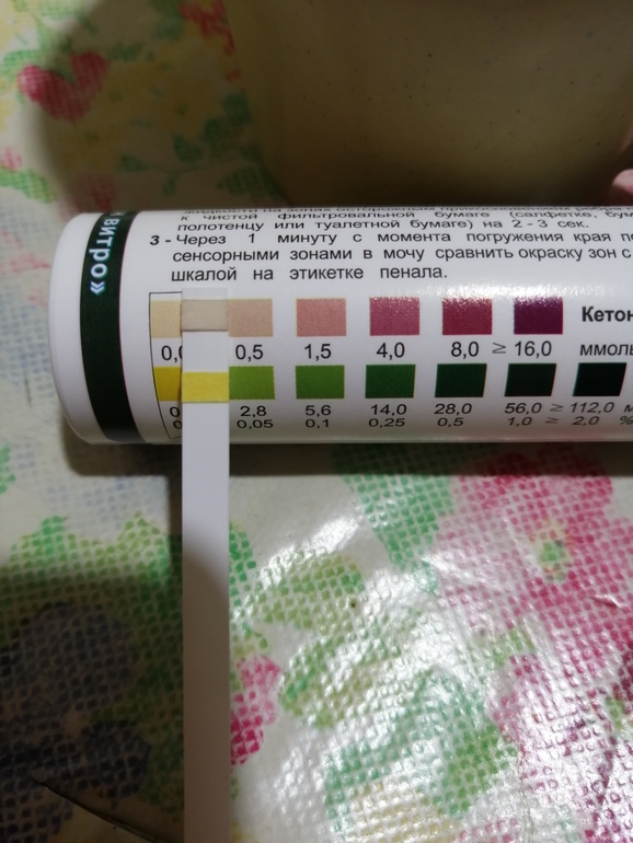 Кто пользовался именно этими полосками поглядите пожалуйста измененился ли цвет? Не могу понять. Цвет ни туда ни сюда, кажется ближе к 0,но на 0.5 тоже вроде похоже. Надо было на дочке утром попробовать чтобы понять какая должна быть полоска без ацетона.