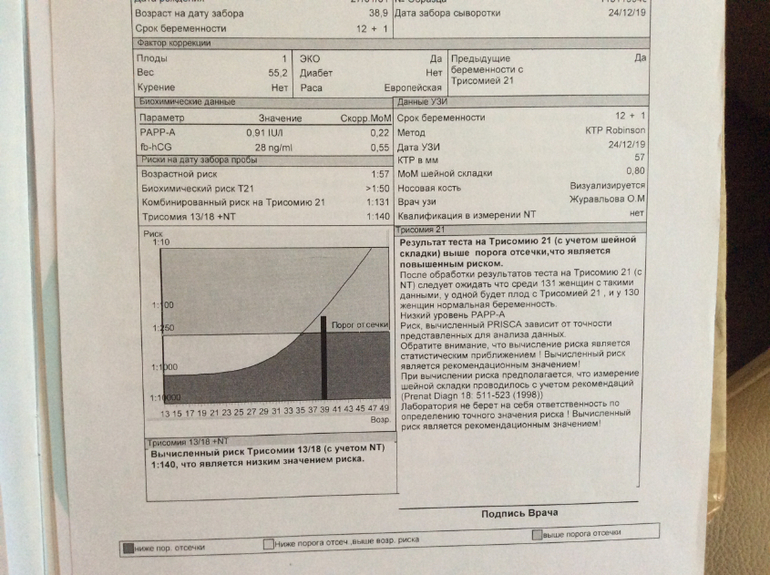 Результаты: УЗИ, КТГ, доплера, скринингаВчера получила результат биохимического анализа крови, и была шокирована. Очень снижен папп и высокие риски по синдрому Дауна. Естественно, умом понимаю, что сильно повлиял возраст и анамнез (в 2017 году была естественная беременность с трисомией 21 хромосомы) . Сейчас беременность ЭКО, эмбрион прошёл проверку ПГД на 9 хромосом. Якобы основные синдромы исключены. В клинике попросила показать Запись какого эмбриона мне перенесли, вроде-бы все в порядке, две подписи контрольных мне показали. Но я очень переживаю, прямо впадаю в депрессию. Пугают и риски по патологиям и возможные осложнения течения беременности с таким низким папп. По узи все хорошо, но я теперь сомневаюсь в его правдивости, а вдруг доктор ошиблась в чём-то. Вчера я успела поехать и сдать ещё один анализ крови но уже не прииска, а астрая. Чем она отличается особо не нашла информации, но два доктора посоветовали ее сдать. В пятницу будет результат и на субботу я уже записалась к генетику на консультацию. Хотела так же сразу переделать узи, но Запись только на конец января. Девочки, милые, кто уже прошёл первый скрининг, посмотрите мои фото, что скажете? Может кто-то проходил что-то подобное, как прошла беременность и что с малышиком?