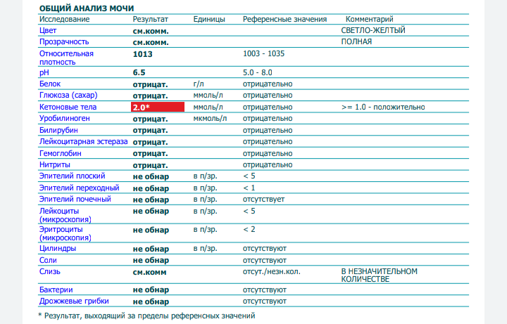 У меня один раз вылезли кетоны, доктор сказал, что это голодные кетоны - так как с вечера я поела только вареную курицу с овощами, углеводов было мало (а надо было кусочек хлебушка хотя бы ещё скушать) + понервничала. Поэтому перед сдачей мочи я теперь кушаю часов в 9, делаю ещё перекус перед сном (йогурт, кефир), и кетоны больше не появляются.