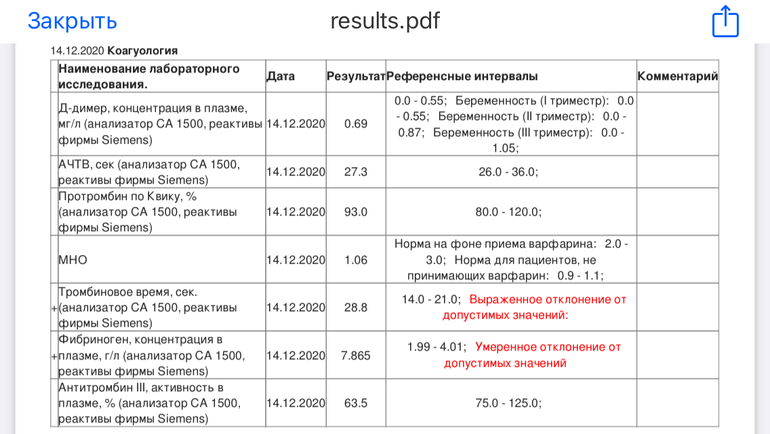 Коагулограмма повышены значения