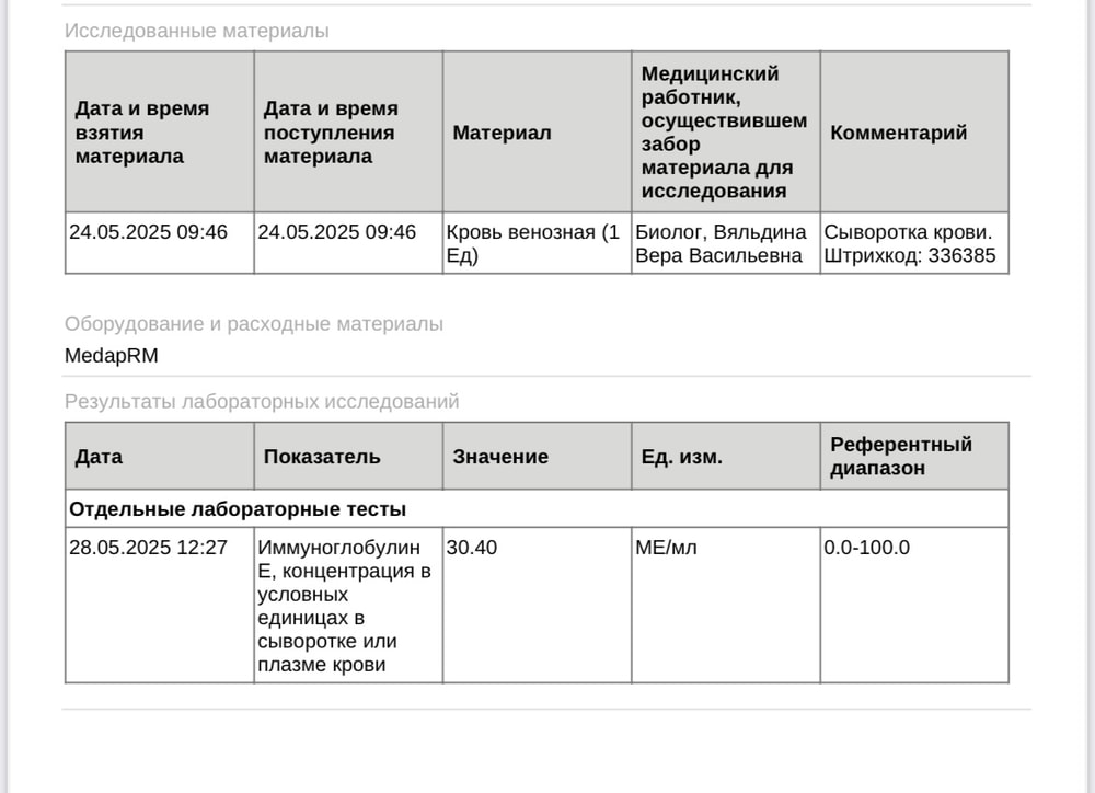 АллергияПодскажите пожалуйста пришел анализ на иммуноглобулин не понимаю нормально ли все ? Есть аллергическая реакция?