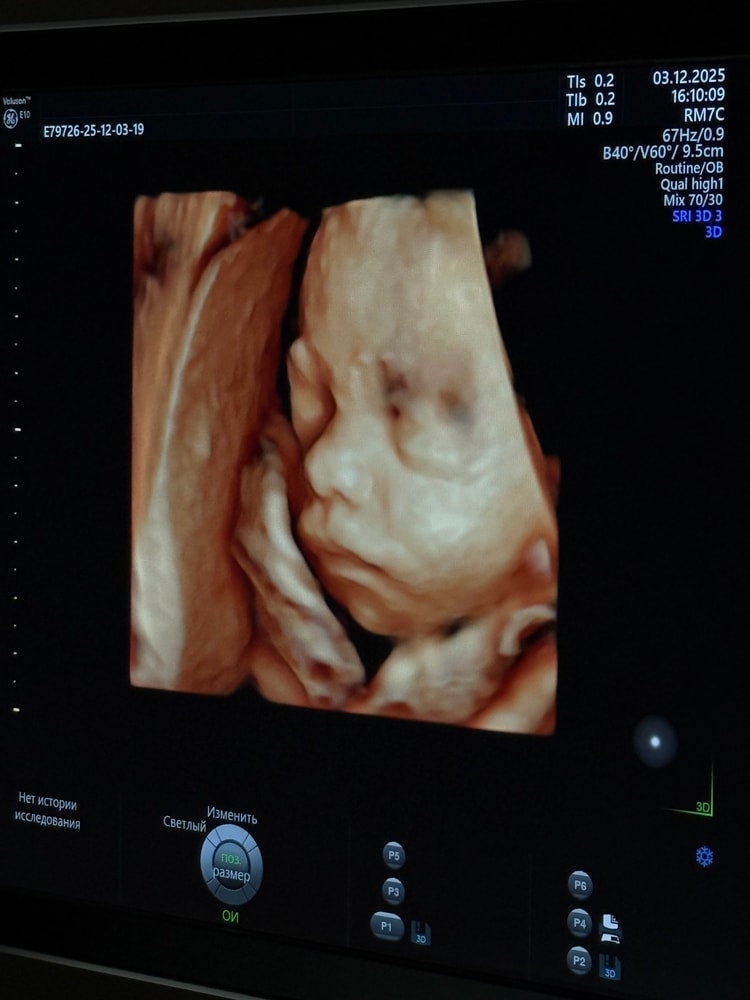 сегодня на узи в 26 недель нет кист, нос 7 мм, и вот такое фото в 3d, жду родов и верю что все будет хорошо ❤️