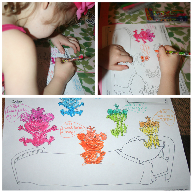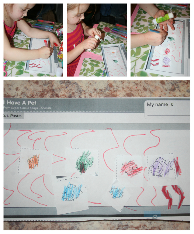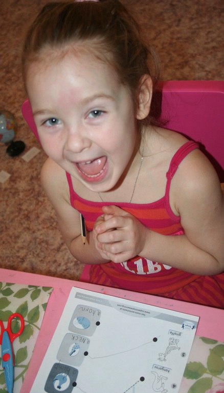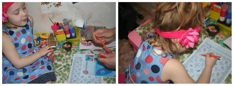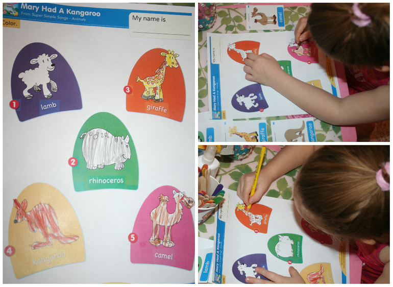 Дальше мы приступили к выполнению бумажных заданий и сначала пораскрашивали, опять же под мою нескончаемую болтовню, боюсь, что несовершенную, но все же :-) Вчера вечером поймала себя на мысли, что уже думаю на английском, давно такого со мной не было :-)