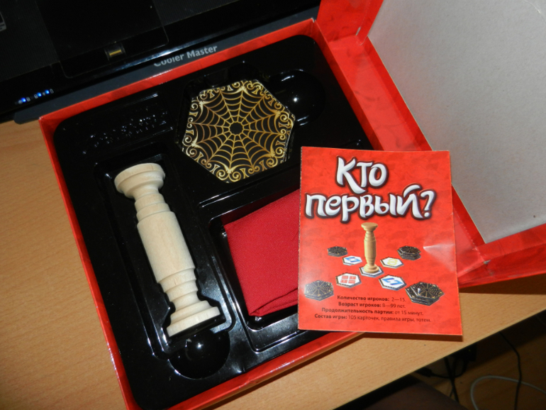 Вторая копия, на которую я наткнулась, ну уж совсем бюджетная - "Кто первый"... и не знаю, что заставило меня ее купить (наверное, перехап настольных игр за последние пару месяцев), она купилась...
