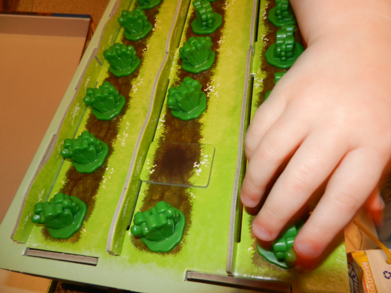 Что об исполнении игры - очень плотная коробка, удобная для хранения, которая является и основой для стилизованного огорода из плотного картона (у коз свое видение, у мышки - свое).