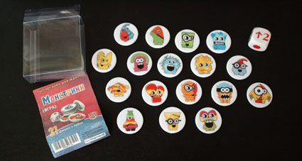 Фишки двусторонние и рисунки все разные. Даже просто рассматривать их Артёму было интересно. И играет он ими не только в эту игру, но и использует как персонажей к другим играм.