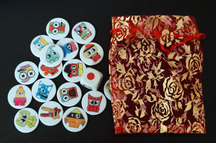 Хранить их в заводской коробочке не удобно, она не закрывается, поэтому мы приспособили вот такой мешочек. Но вообще в планах сделать монстровый мешочек)))