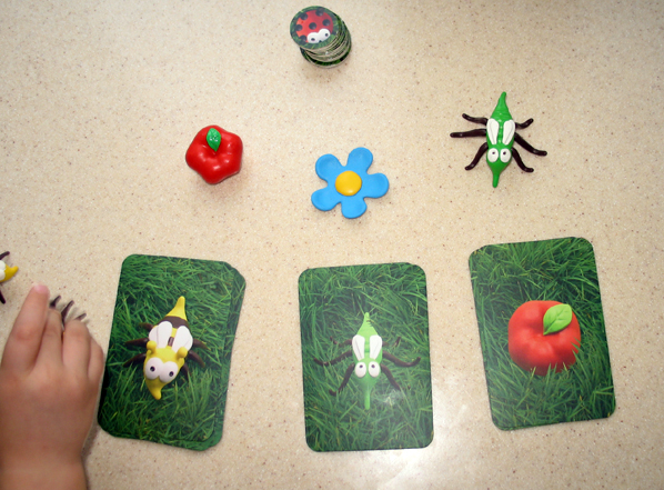 А играем мы вот как: мы так же делим Пчелок и кладём Яблоко, Цветок и Комара в центр. Жетонами не пользуемся, поэтому они пока все на месте. Берем стопку карт общую, кладём лицом вниз и я переворачиваю по карте. Если выпало "Яблоко", то первый дотронувшийся до яблока, получает карту. Если выпал "Комар", то тот, кто первый дотронулся до комара, получает карту. Если выпала "Пчела", то карту получает тот, кто первый посадил свою пчелу на цветок. Потом считаем у кого больше карт, тот и победил. В такой вариант мы играем даже с младшим.