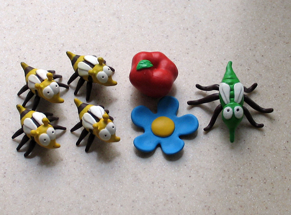 7 фигур (4 Пчелы, 1 Комар, 1 Цветок, 1 Яблоко)