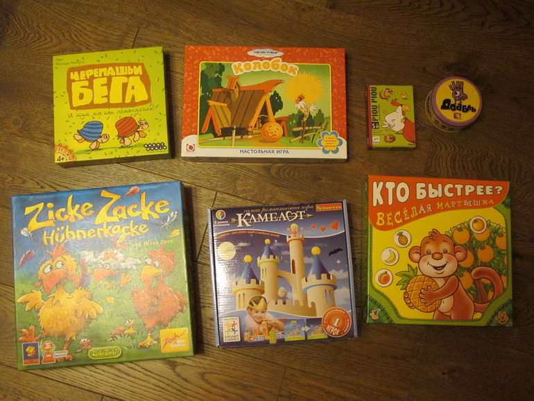 прежде всего - огромное, невероятное спасибо Анастасии за рекомендацию Чик-чирик от Djeco(Piou Piou - маленькая коробочка справа от Колобка). я не ожидала такого успеха и брала игру с некоторой опаской - цена под 1000 руб за маленькую коробочку карт меня сильно смущала. хоть многие и говорят, что игры Djeco можно и распечатать на принтере - я решила разориться и посмотреть, какая будет реакция ребенка. больше двух недель мы играли КАЖДЫЙ вечер не менее, чем в 5-6 партий. это был просто невероятный хит - мы подсадили на эту игру всех друзей с детьми, кто приходил к нам в гости, мы сами постоянно брали эту игру в гости - в общем, это у нас, действительно, открытие сезона! Настя, еще раз спасибо большое! на очереди к покупке Cардины от Djeco.