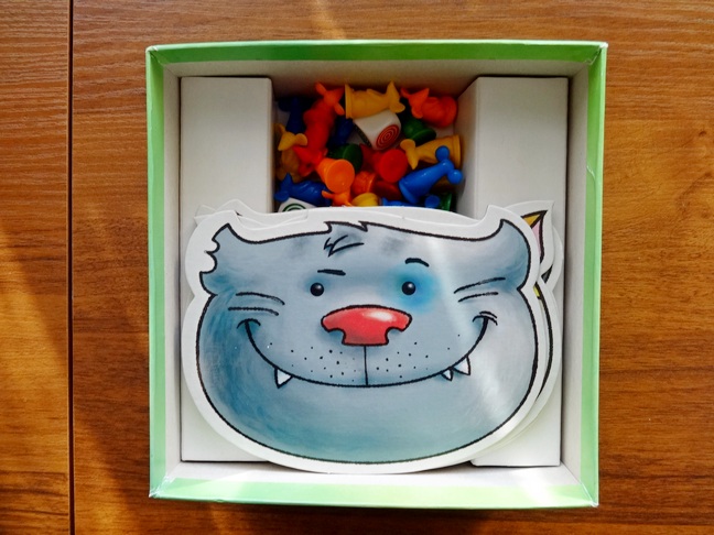 Из коробки мы извлекли 4 хищные мордочки котиков и огромное семейство мышат разных цветов, а также два кубика.