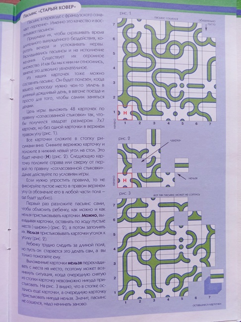 Пасьянс "Зелёные поляны" увидела здесь, в сообществе, и вспомнила, что у нас тоже такой есть. Карточки вырезала из такого дидактического альбома, купленного когда-то давно.