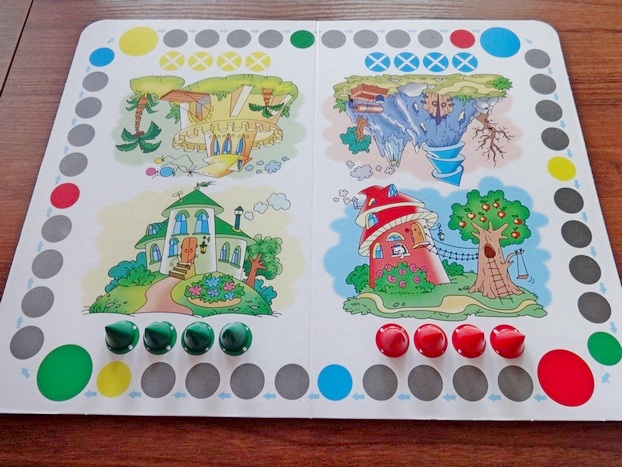 Игра на другой стороне поля кажется немного более динамичной (но именно немного, опять же надо провести все 4 колпачка по маршруту). Для моей непоседы это сложно. Делитесь опытом, как играете вы )).