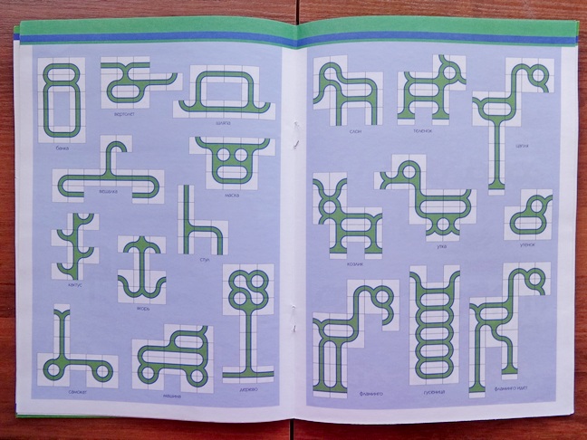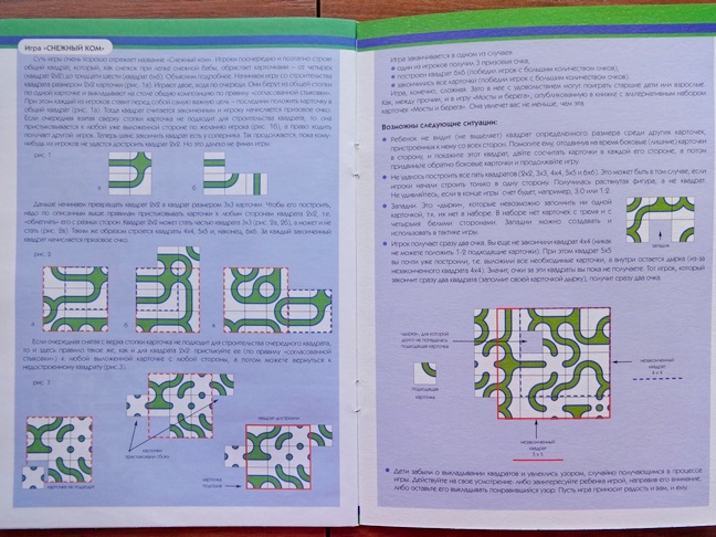 В альбоме описаны разные варианты игры. Во-первых, из карточек можно составлять разные узоры и фигуры, затем трансформировать их. Но дочь мою такой вариант не заинтересовал (появилась идея устроить соревнования еще с кем-нибудь из детей, чтобы собирали картинки, надо над этим подумать).