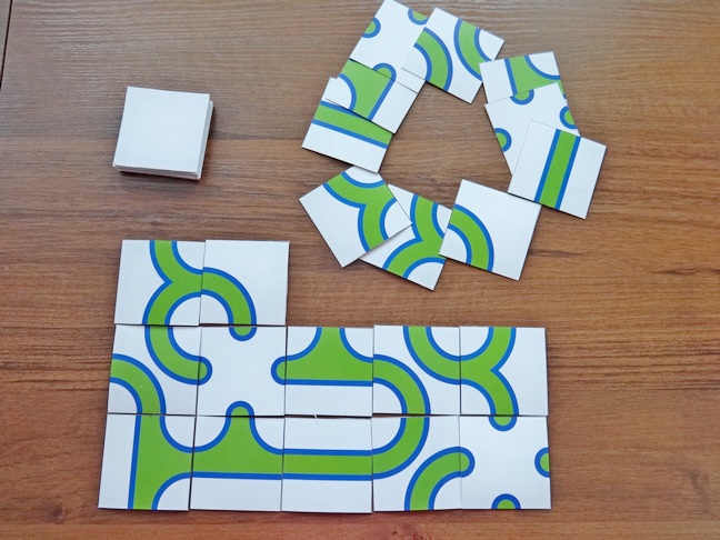 Суть в том, чтобы совместными усилиями, по очереди выкладывая карточки, собрать ковер без дыр. Такой вариант у нас пошел лучше, даже несколько раз получилось выложить все карточки. Игра ценна тем, что она "кооперативная", то есть выигрывают или проигрывают все игроки разом. Можно пробовать даже с малышами, можно играть одному.