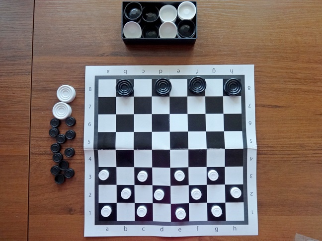 В этом же наборе есть и шашки, игру тоже осваиваем. У нас на выбор - большие и маленькие.