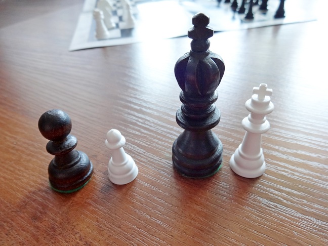 Я уже писала, что папа учит Ксюшу играть в шахматы. Честно говоря, успехов пока нет. Мы все еще находимся на стадии изучения фигур, их расстановки и способов хода. Но с другой стороны, торопиться некуда. Очень бы хотелось, чтобы в школе был такой предмет - "Шахматы" (у племянницы есть, но она учится в гимназии), хотя я на это даже не надеюсь. Будем учиться понемногу. У Ксюши появился свой набор шахмат (чтобы каждый раз не доставать папин подарочный). Фигурки простенькие, пластмассовые, маленькие размером, но дочке они очень понравились.