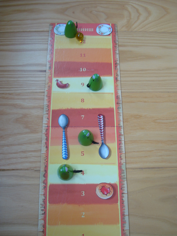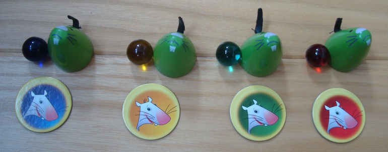 4. Шарики без мышек по полю катаются, конечно. Издатели предлагают до того, как накрыть горошек мышкой, пользоваться не им, а цветными фишками мышек. Это проблему решает, а сама я до этого не додумалась.