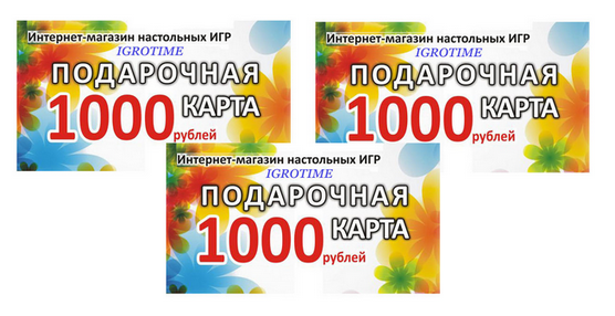 • Победители получат подарочный сертификат на сумму 1000 руб., который можно использовать при заказе в интернет-магазине Игротайм. С помощью этого сертификата вы можете приобрести в магазине игру стоимостью до 1000 руб, а также выше, если доплатите оставшуюся сумму любым способом, который предлагает магазин.