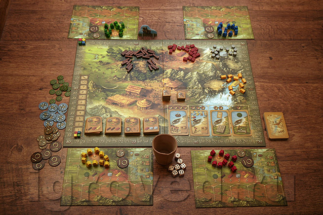 А еще игра может закончится неожиданно рано: наточив каменные топоры, племя отправляется на прииски с целью принести как можно больше золота, а соседнее племя вдруг забирает последнюю хижину из одной стопки, и все "добытое непосильным трудом" золото при подсчете очков ценится не выше древесины.