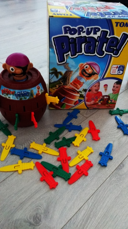 6) Pic pirate от Tomy. Покупалась младшему в его 2,5 года. Любит играть до сих пор. Игра на случайность - вставляете мечи в отверстия бочки, и пират у кого-то выстреливает. Феде больше всего нравится именно этот момент) при том, что может сидеть играть один. Арсений тоже иногда играет с братом.