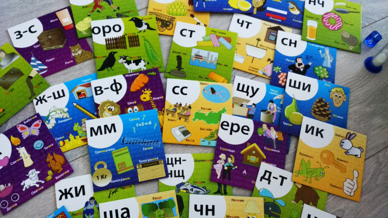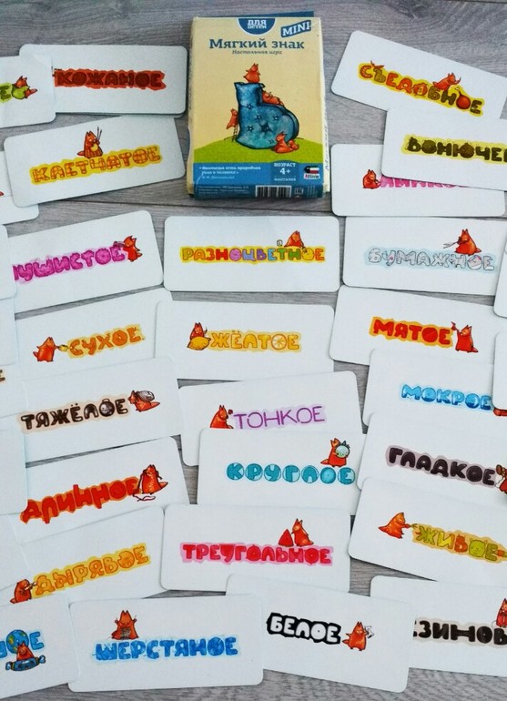 Мягкий знак. Очень нравится сыну, играем пока по упрощенным правилам - называем предмет, удовлетворяющий 1-му свойству, хочу постепенно перейти к 2-м свойствам. Эта игра интересная сыну, играем регулярно почти год. Можно усложнять игру и называть предмет, подходящий под 3 выпавших свойства. Младший тоже принимает участие, старается думать)