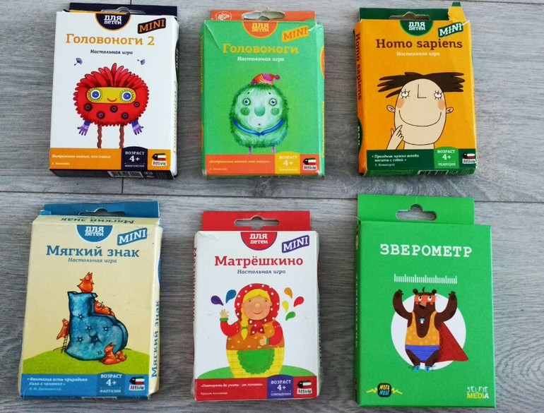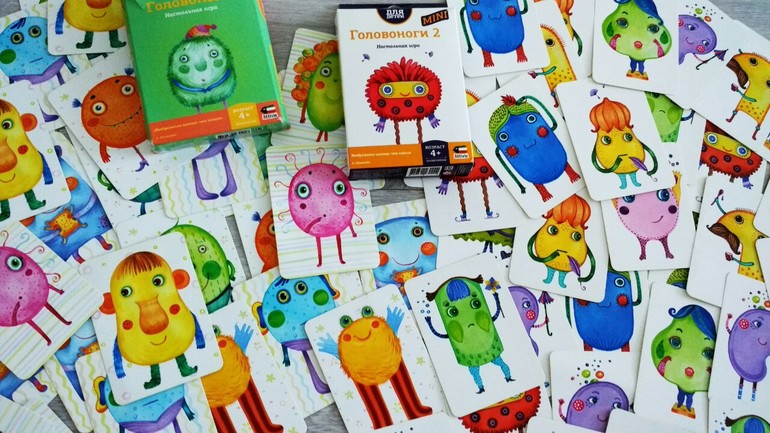 Головоноги и Головоноги2 от Простые правила. Сначала купили Головоноги, сын быстро запомнил, как кого зовут, и больше менять имена не хотел. Как только я пыталась поменять имя какого-нибудь чудика, он меня поправлял) купили Головоноги2 - Тоже самое) сейчас играем редко, в первое время частенько. Но к 3-м годам, играет младший сын. Я учу его обращать внимание на детали, особенности, запоминает он легко и быстро.