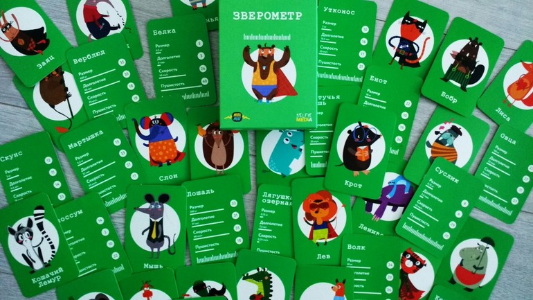 И последняя карточная игра - Зверометр от selfie media. Эта игра Арсению досталась в адвент-календаре перед новым годом. Нам понравилась, даже мне интересно. Если о скорости, размерах и пушистости животных я имею какое-то представление, то о долголетии - совсем нет)) смысл игры: игрок берет 5 карт, второй игрок дает задание, например, расположить животных по убыли по пушистости. Первый игрок раскладывает, как он думает. Потом проверяем на обратной стороне, насколько правильно. Надо сказать, что мы пару раз только правильно расположили всех пятерых и не ошиблись) то есть учиться и учиться)