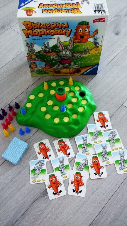 2) Выдерни морковку от Ravensburger. Сын увидел в гостях, очень ему понравилась, решили купить домой. Замечательная развлекательная игра-ходилка. Покупали - сыну было чуть более 4-х лет - играет и в 5 , частенько достает. Последнее время и младший подключился к игре.
