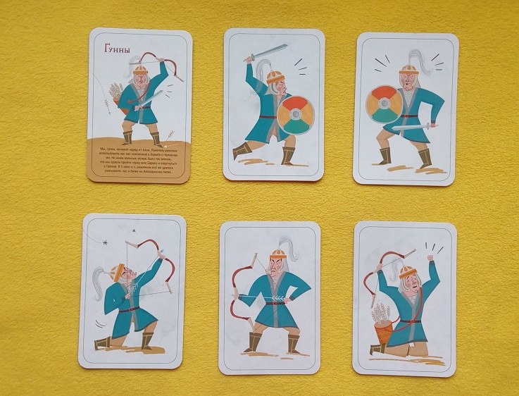 Я очень старалась написать просто. Но эта игра, как еда. Ее надо пробовать, а не слушать, какая она вкусная захватывающая. Карты с изображением народов не подписаны (на фото специально подписала), поэтому представляю, как сложно разобраться "галл атакует гунна".... где тут галл, где тут гунн, ребята?... Но парочку раз сыграешь и уже в доску свой и всех ребят знаешь по именам))