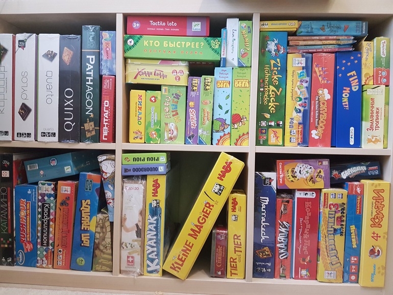 Где-то тут игра у нас на полочках...среди любимых, среди новых, некоторых даже не распакованных (вот и такое бывает, ремонт вроде и закончился, а коробки в кладовке не все разобраны, а потом выкроишь время навести порядок в коробках, а там бац! И сокровища!!!) среди редко играемых, среди на попозже запасенных...в общем, где-то здесь...
