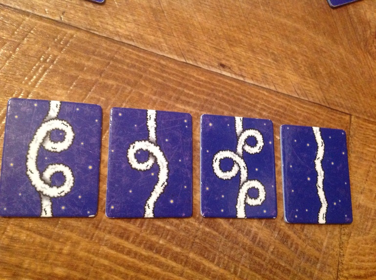 Карточки раскладываются рубашкой вверх, а на них самих нарисованы петли-трассы полета ракет или же сами ракеты.
