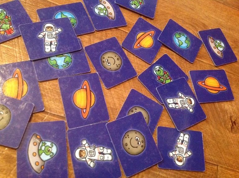 Игра очень качественно сделана - она красочная и одновременно прочная, ибо начинать играть уже можно с 2 лет. И на мой взгляд она разноплановая - это и приучение к настольной игре, и развитие математических навыков, и развитие сопоставления, и навыки конструирования, и общее развитие. У нас например после этой игры пошла тема Космос.