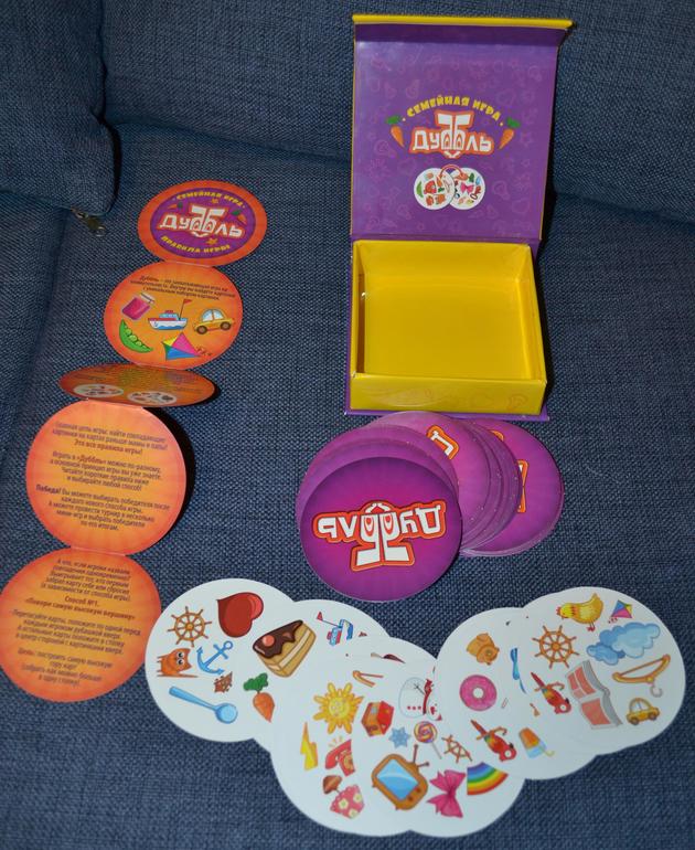 Не знаю, насколько хорошо сделан "Доббль" за такую-то цену, но эта игра на твёрдую 4, а то и с плюсом! Хорошая крепкая коробочка на магните, довольно плотные карточки с яркими изображениями, инструкция с несколькими вариантами игры. Сыну понравилась, хотя и не хит.