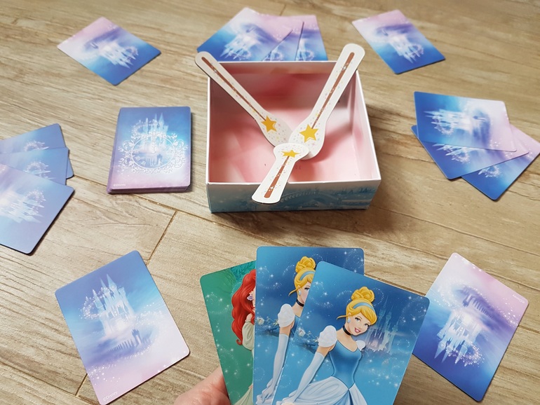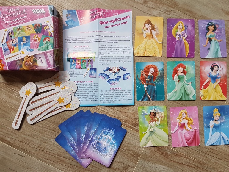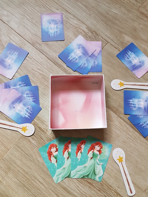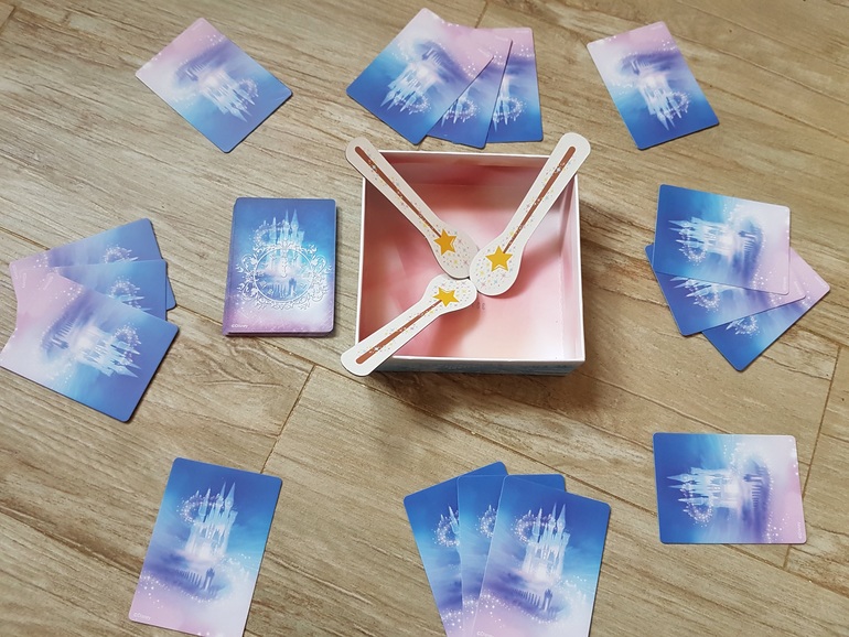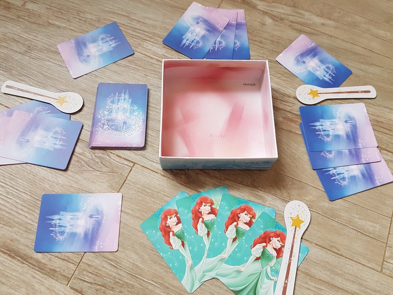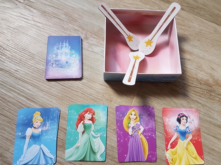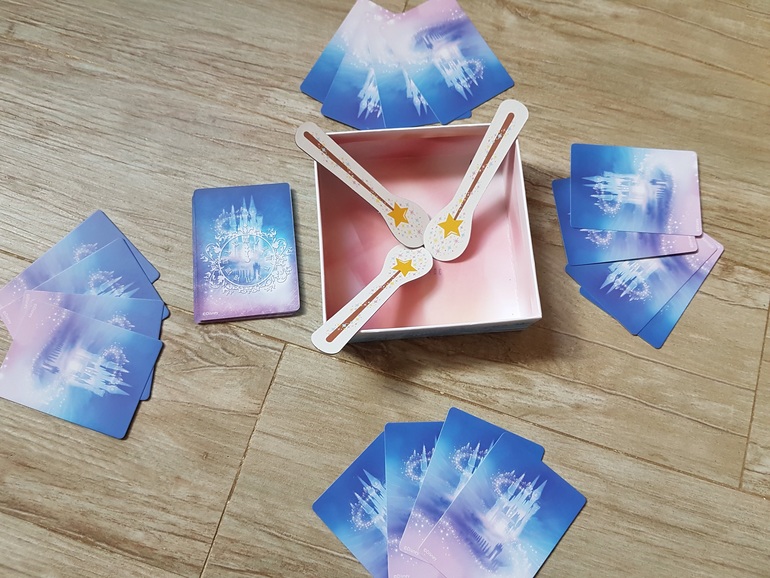Для игры подготавливаем карточки с принцессами (столько разных принцесс, сколько игроков), в коробочку кладем волшебные палочки (по количеству на одну меньше, чем число игроков) таким образом, чтобы их удобно было взять, и штрафные карты.