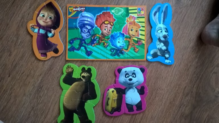 Есть еще у нас мягкие пазлы от Vlady toys которые еще выжили))) Они уже не впрегляднов виде,т.к. гнется паралон и картон тоже заламывается, но т.к. это герои любимых мультфильмов, то не менее любимы)))