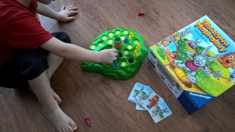 Пока по правилам не играем, совсем недавно она у нас. А вот расставлять всех кроликов по лункам и крутить морковку, просто вызывает дикий восторг, когда они начинают падать))