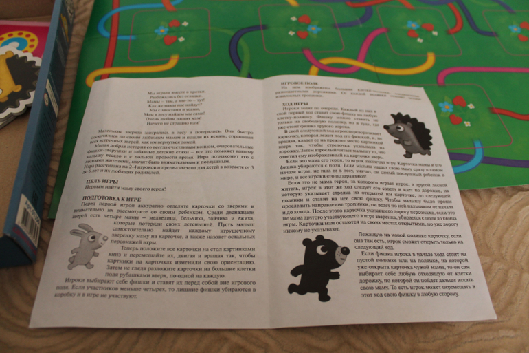 Игра простая - на игровое поле раскладываются карточки (полянки). Игроки расставляют своих животных на любую полянку. Игру начинает самый младший из игроков. Он переворачивает карточку, на которой стоит его герой (не вращая ее). Зверь, изображенный на карточке, указывает дорожку, по которой должен идти игрок на следующую карточку.