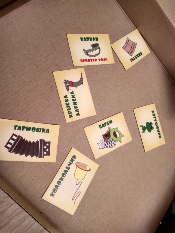 В ходе игры игрок-Шапокляк несколько раз расставляет елочки, а игрок-крокодил ее ищет, а поймав отнимает у нее одну карточку (карточки лежат рубашками вверх их не видно). Если попадает капкан, то поезд едет еще на одну клетку вперед вне графика.
