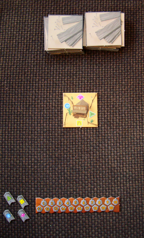 Подготовка и процесс. Каждый игрок выбирает, какой клан он представляет. На столе выкладывается стартовый тайл. Остальные тайлы перемешиваются и закрыто размещаются на столе.