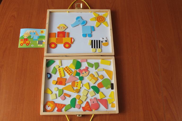 42 магнитные детали и 25 двусторонних карточек-шаблонов