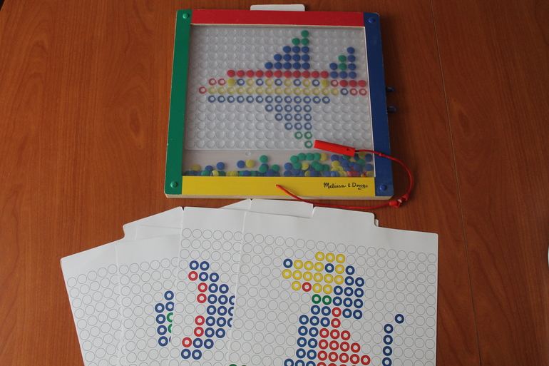 Добрый! У мозаик с палочками GoGo и Melissa (последняя и предпоследняя) одинаковый принцип: все детали под закрытым прочным пластмассовым стеклом, стекло не вынимается. Детали передвигаются только с помощью магнитной палочки.